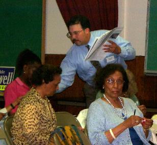 | Discussing community concerns with District 10 residents |
