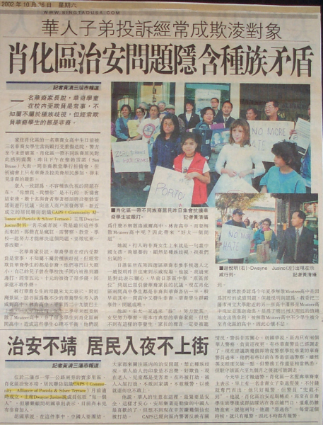 | Sing Tao Daily 10/26/02 Leading Hate-Crime Protest March |