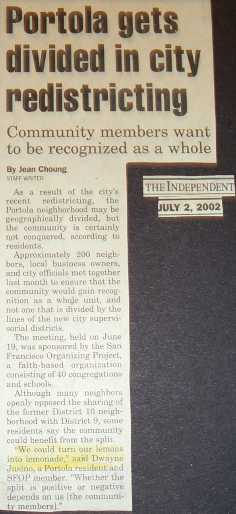 ... Dwayne Jusino, a leader of the Portola district's attempt to reunify itself as a neighborly and voting entity... "The balance that the task force was brought about to realize seems to be eroding into a peculiar play of politics," he said. He said that the chairwoman and other members of the task force who were sworn to be objective had turned into "advocates"... on the issue of local representation. |
