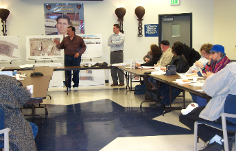 | Reviewing plans for the new Portola Library |